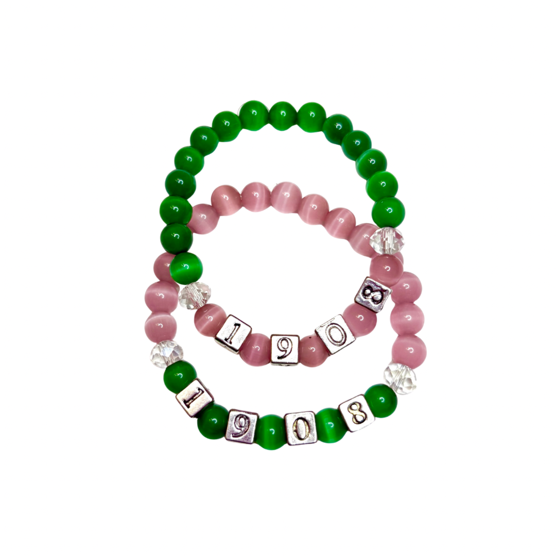Choose between one of two styles, both featuring pink and green beads with 1908 metal beads in the middle. group rates available, send a message for details
