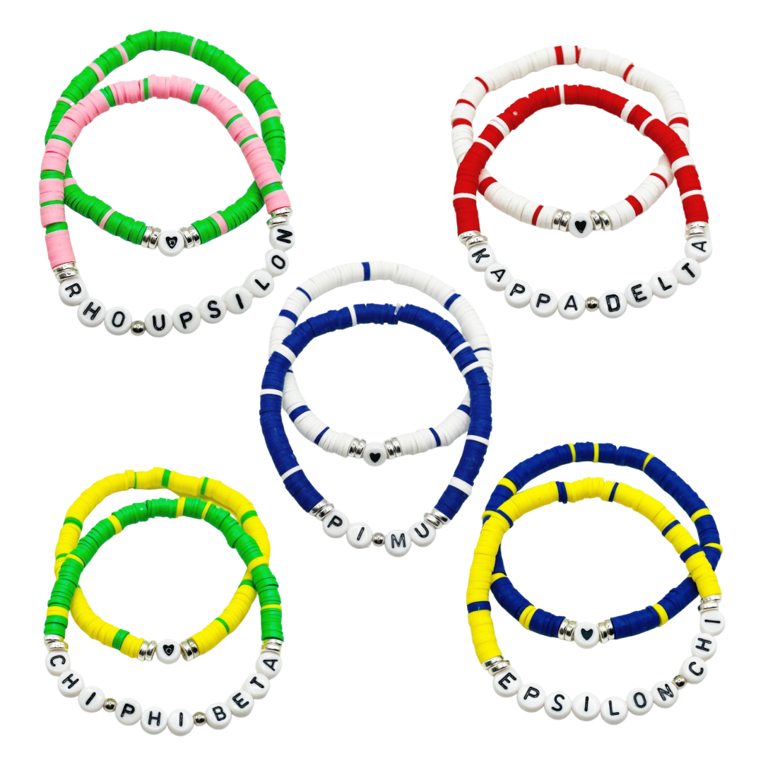 All chapters available. each set includes one chapter bracelet & one heart bracelet. For bulk rates, please send a message.