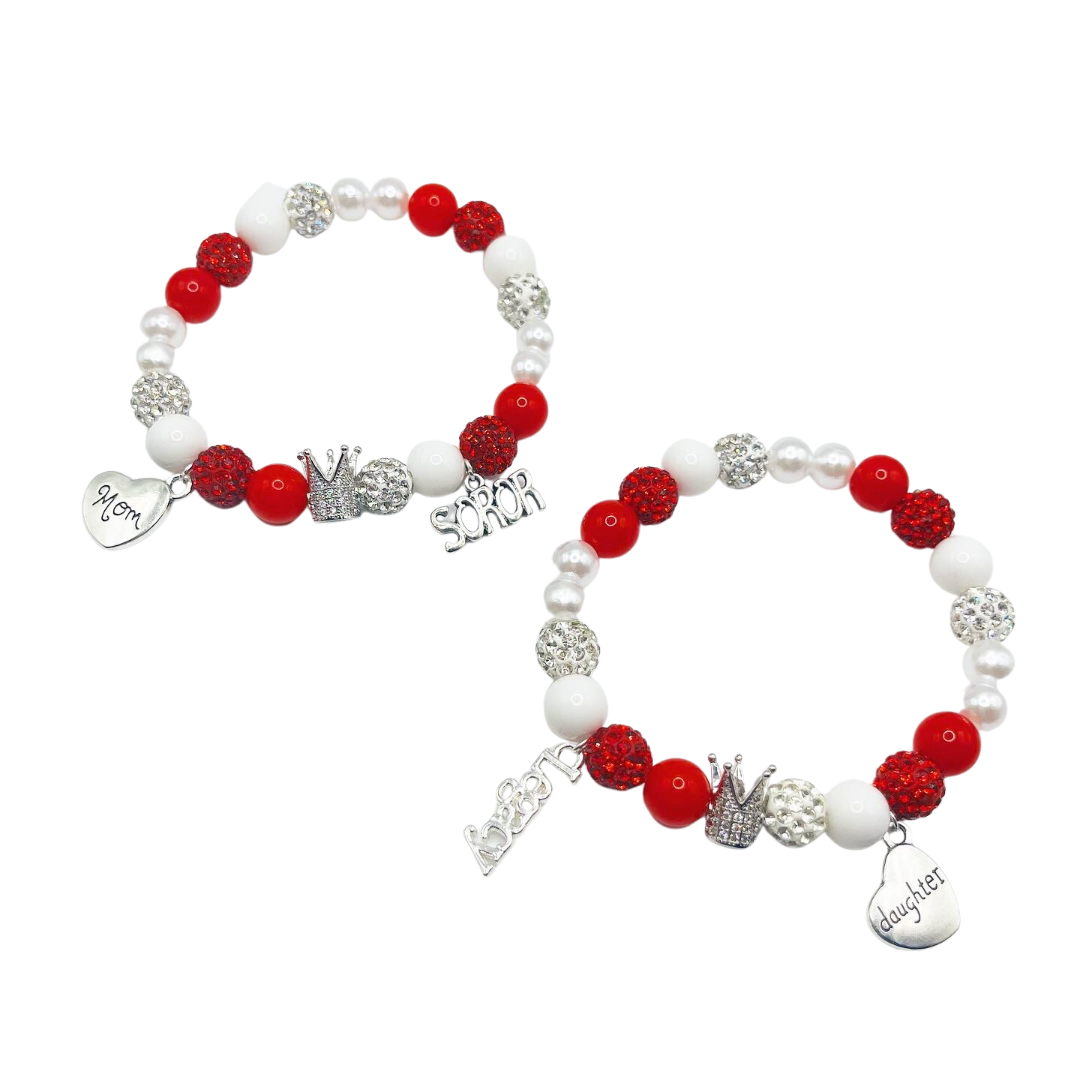 Crafted with the utmost care and attention to detail, these bracelets are a beautiful and meaningful way to showcase your love for your sorority and your family. Made from high-quality materials, each bracelet features red, white & pearls beads alongside 2 charms on either side of a center crown creating a truly special and unique keepsake.