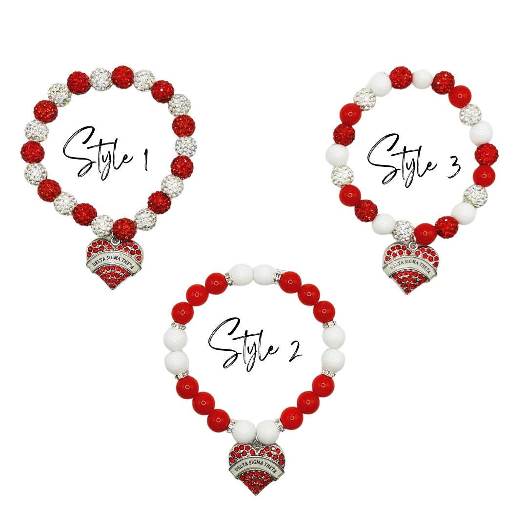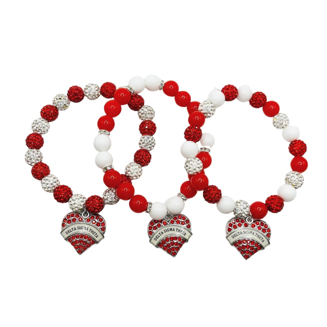 Delta Sorority charm bracelet with sorority charm. Display your sorority's colors brightly and beautifully with this hand stung, bead charm bracelet. A perfect, affordable gift for new members or as a gift for your favorite Delta Woman on her Founder’s Day, crossing anniversary, birthday or just because! The bracelet is constructed on stretchy, yet durable elastic string that rests comfortably on wrists without irritation.