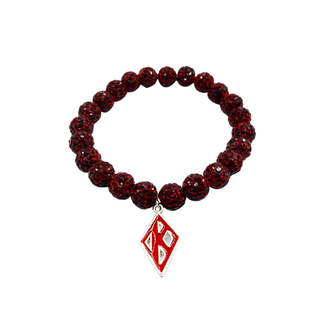 Kapps K Diamond Bracelet. made with crimson shamballa beads that shine in the light.