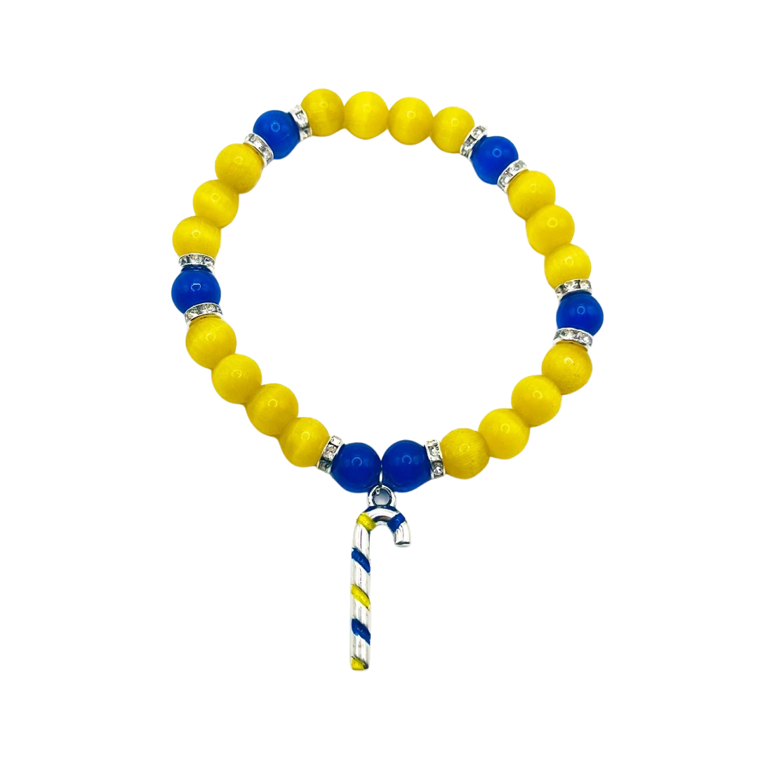 Beautiful blue & yellow bracelet with cane charm in the middle. A perfect, affordable gift for new members or as a gift for your favorite soror on her Founder’s Day, crossing anniversary, birthday or just because! The bracelet is constructed on super stretchy, yet durable elastic string that rests comfortably on wrists without irritation.
