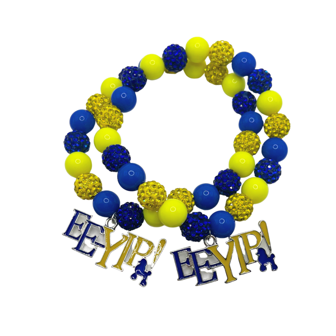 sigma EEYIP charm bracelet. Display your sororities colors brightly and beautifully with this hand stung, beaded charm bracelet. A perfect, affordable gift for new members or as a gift for your favorite Poodle on her Founder’s Day, crossing anniversary, birthday or just because! The bracelet is constructed on super stretchy, yet durable elastic string that rests comfortably on wrists without irritation.
