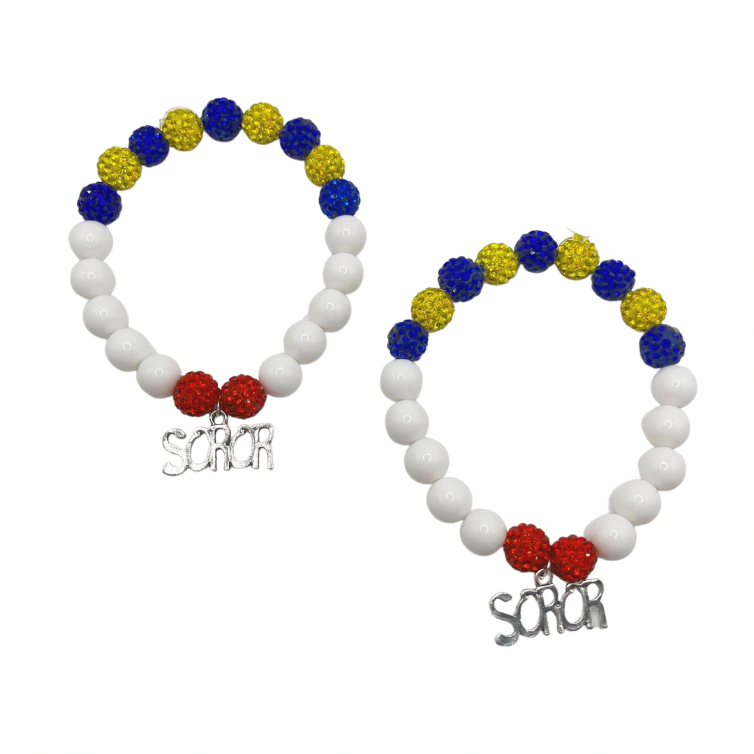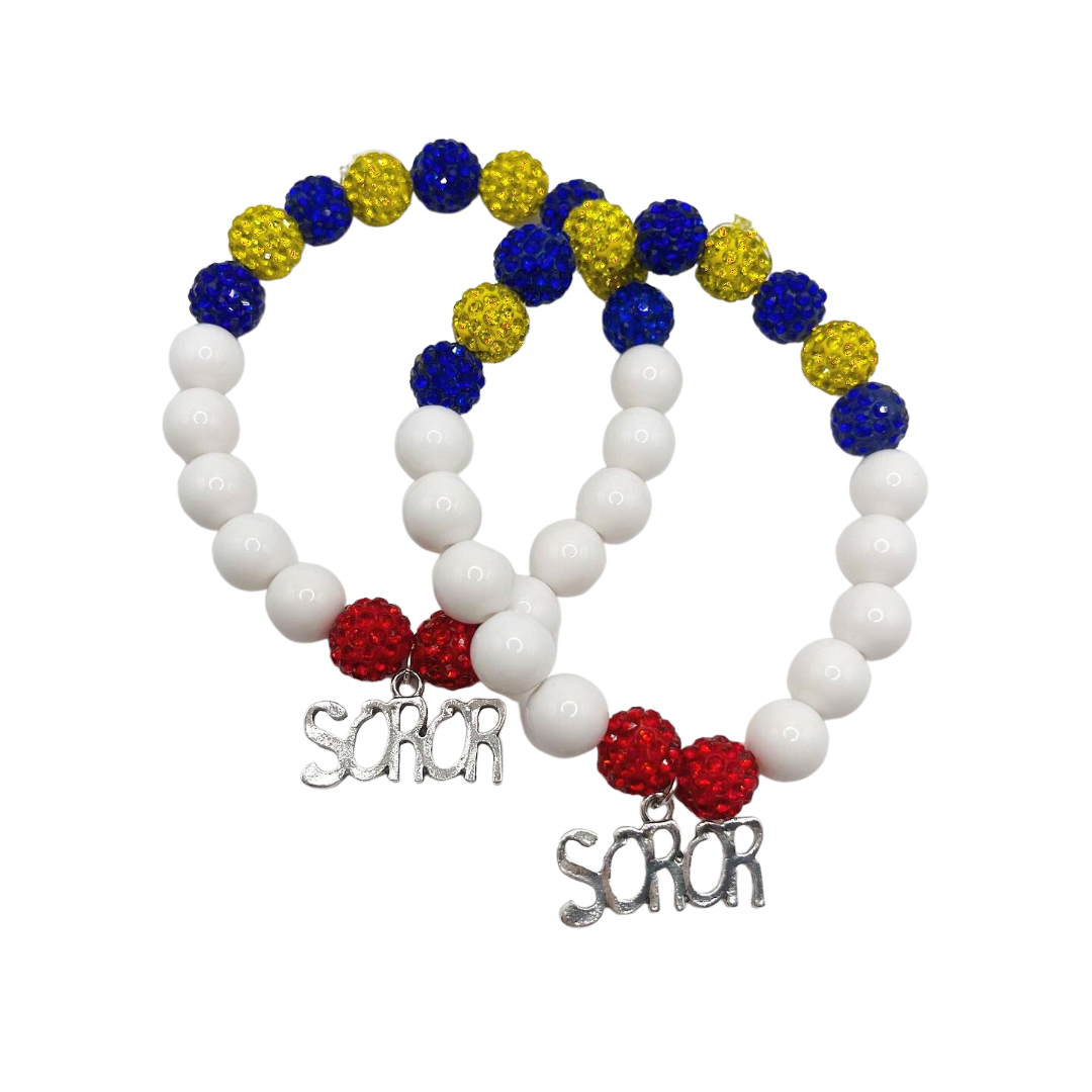 Sigma Sorority charm bracelet with Soror charm. Display your sorority's colors brightly and beautifully with this hand stung, bead charm bracelet. A perfect, affordable gift for new members or as a gift for your favorite Sigma Woman on her Founder’s Day, crossing anniversary, birthday or just because! The bracelet is constructed on stretchy, yet durable elastic string that rests comfortably on wrists without irritation.