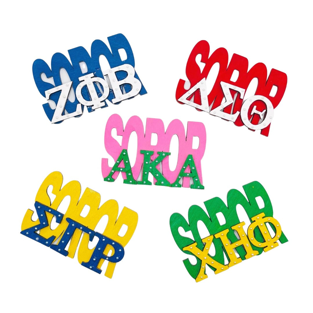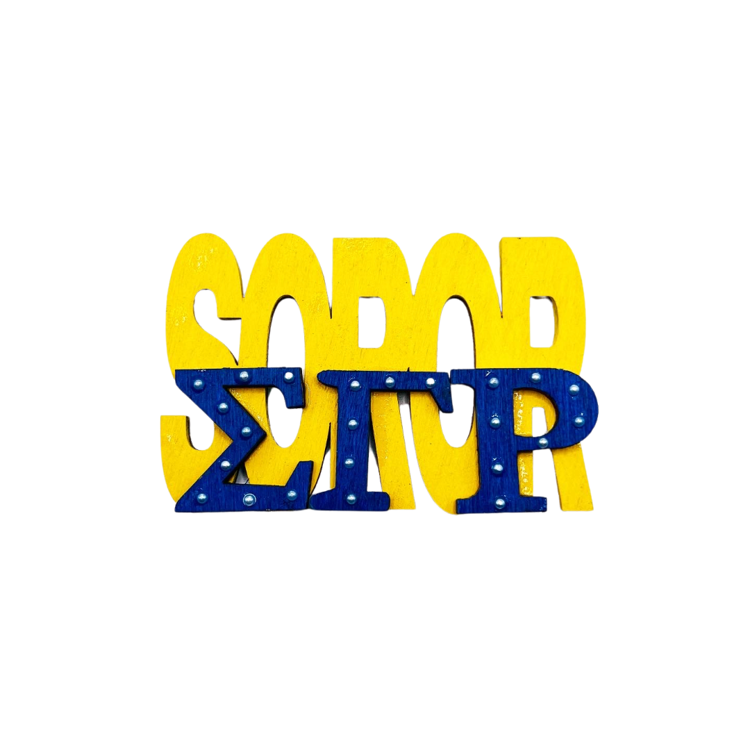 Sigma Sorority Soror 3 in Pin is a stylish, handmade, wooden piece embellished with pearls. It is carefully crafted with attention to detail and designed to be long-lasting. Its superior quality offers an elegant and timeless look.