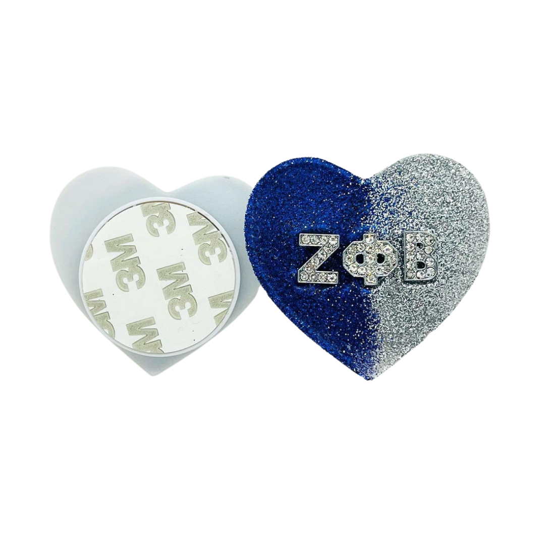 2 inch phone grip with zeta phi beta Greek letters. Glitter is well secured so no bits will fall off! A perfect, affordable gift for new members, or as a gift for your favorite Zeta Woman on her Founder’s Day, crossing anniversary, birthday or just because!