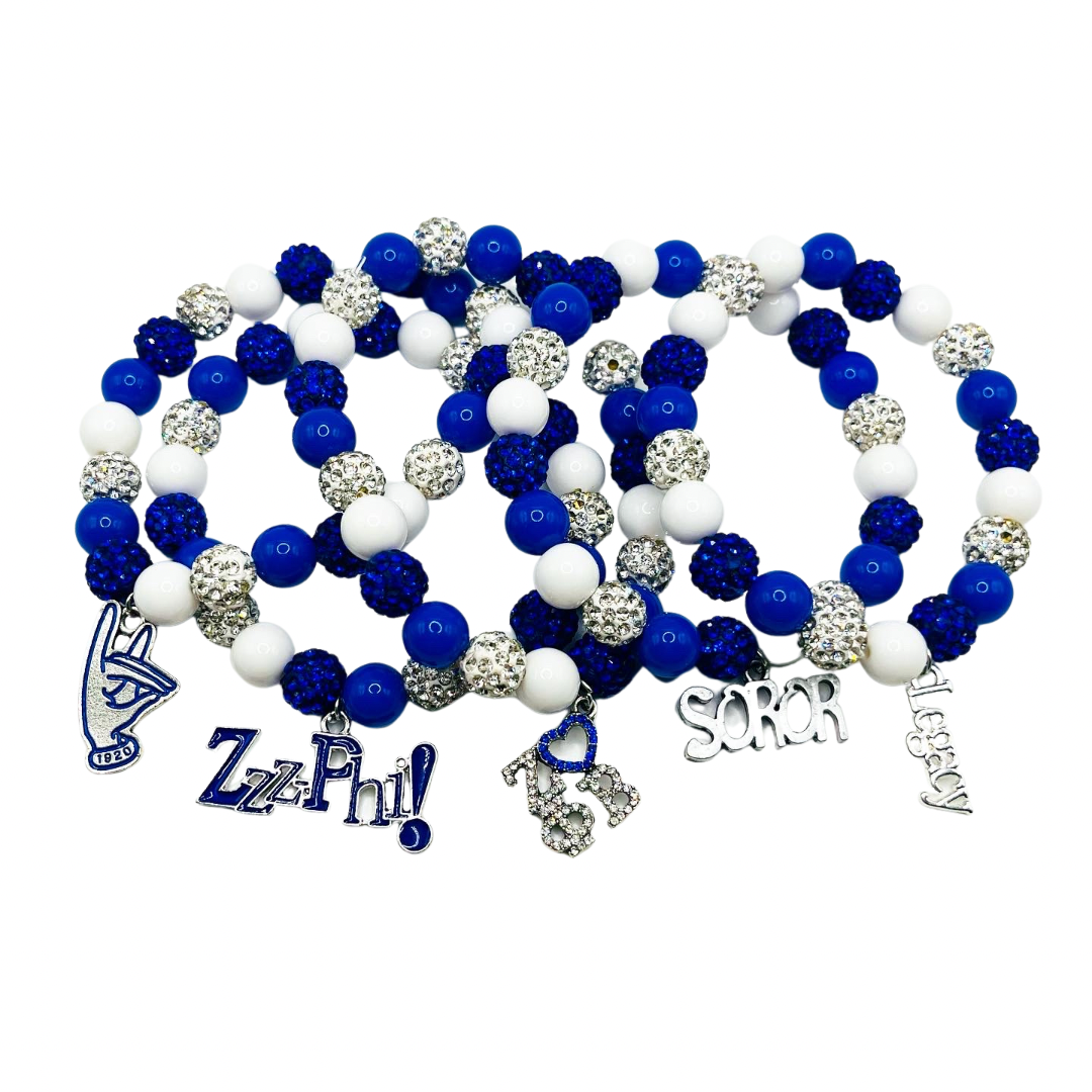 Zeta charm bracelet with love charm. Display your sorority's colors brightly and beautifully with this hand stung, bead charm bracelet. A perfect, affordable gift for new members or as a gift for your favorite member on her Founder’s Day, crossing anniversary, birthday or just because! The bracelet is constructed on super stretchy, yet durable elastic string that rests comfortably on wrists without irritation.
